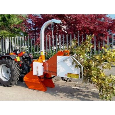 The chipper shredder is ideal for solving problems in medium-sized shipyards. This type of chipper has been developed to solve the shredding problems in medium-size plants. The TPS version of the CHIPPER 150 line is arranged to be fitted to the 3rd point linkage of any type of tractor and powered by the PTO shaft. All the professional chipper machines are equipped with a quick system for blades removal and replacement which reduces maintenance time and eventual assembly mistakes. The hydraulic system has been designed in the min. details and manufactured with high quality components, oversized pipes and with a special electro-valves group, all this to assure the max. reliability and long life during the time.