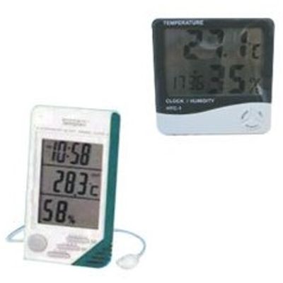 The digital thermo-hygrometer is battery-operated and provides display of room temperature, relative humidity and time on LCD display.