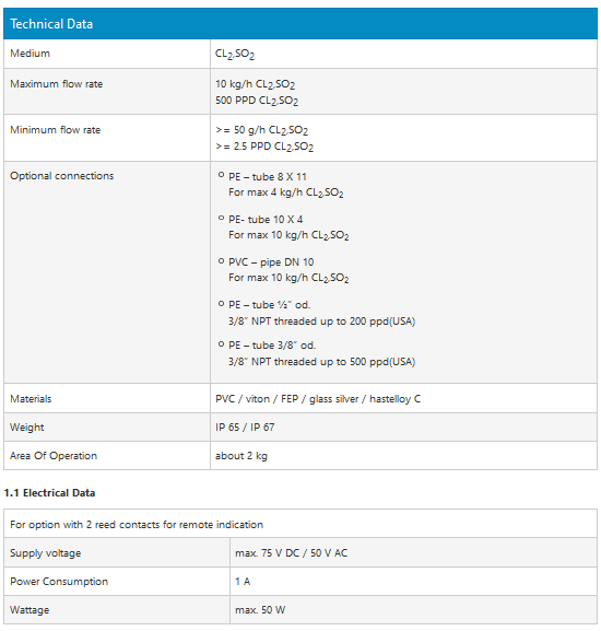 The change – over device can be used in connection with the chlorine dosing units C 105 and V 107 or V 115.