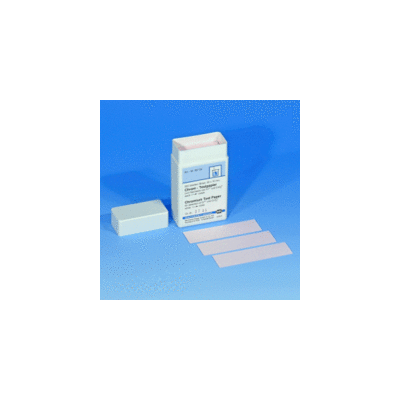 This test paper shows violet spots on a white background upon application of solutions containing chromium. The reaction is based on the presence of chromium as chromate. Cr 3+ ions must be converted to chromate. Interferences caused by mercury salts or molybdates are readily circumvented. Limit of sensitivity: 2 mg/l Cr 3+ corresponding to 5 mg/l chromate.