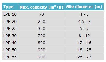 The values in this table are only indicative. Capacities have been calculated for handling woodchip and similar materials.