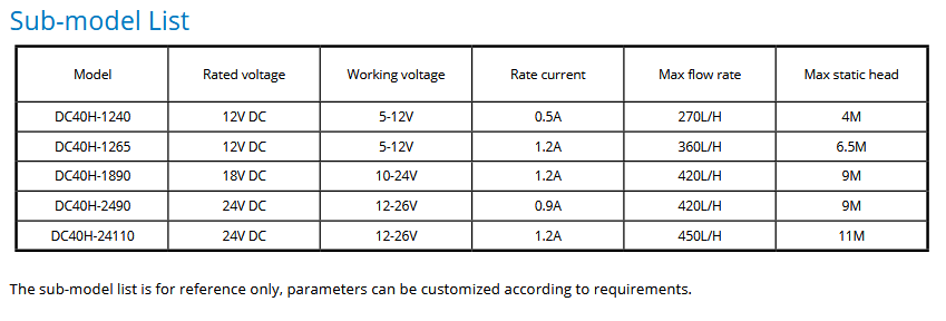 BLDC Pump - Model DC40H -Circulation DC Water Pumps