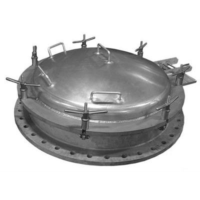 The Shand & Jurs Model 95220 Clamping Manhole Cover is designed as an economical solution that provides ready access to product storage tanks by means of an easily opened-dome hinged cover.