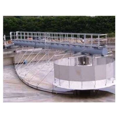 The clarifier can be supplied with either a peripheral drive system or a central drive unit. Commonly used materials are a combination of aluminium (above water) and stainless steel.