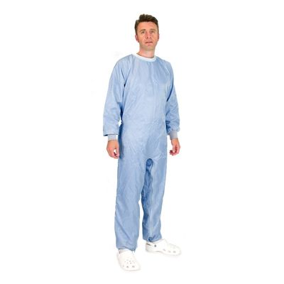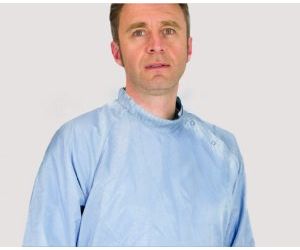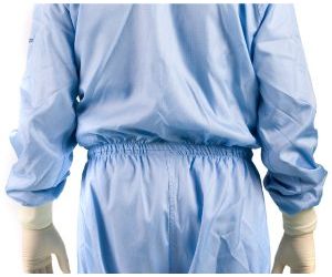 The cuff or stud finish allows the sleeves to fit perfectly into gloves. The cuff is made of antistatic polyester and is resistant to various sterilization processes. The studs are made of stainless steel.