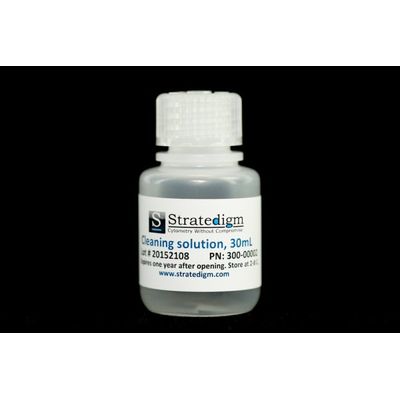 30mL buffered detergent solution to clean flow cytometer sample lines and cuvettes to reduce debris accumulation and minimize air bubbles formation. Keep your system working in optimal working order by using Stratedigm cleaning solution at the end of each day during shutdown.