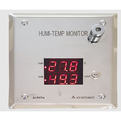 The ACE INSTRUMENTS make Pharma Clean Room humi-temp Monitor is designed to measure the vital parameters of Temperature & Humidity in pharma clean room applications. The clean Room Monitor Model AI-RHTm is designed for minimum cabling and easy flush mounting in mo. The humidity & Temperature is sensor integrated inside & escaped on to the front plate for ease of use & installation.