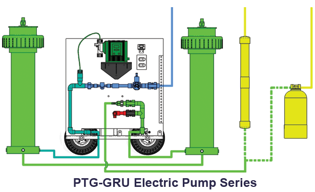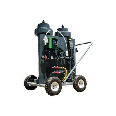 The CLO2IX Portable Systems are the only mobile Chlorine Dioxide production systems. The rugged cart frame is built to take the abuse of going up and down stairs, over hoses, and through wet environments. In addition, the CLO2IX PTG Series Systems utilize replaceable ion exchange cartridges, so there is no need to regenerate the system. Whether the application is emergency service or yearly cooling tower cleaning, the system consistently produces Chlorine Dioxide by utilizing the company`s patented Chlorine Dioxide production method.