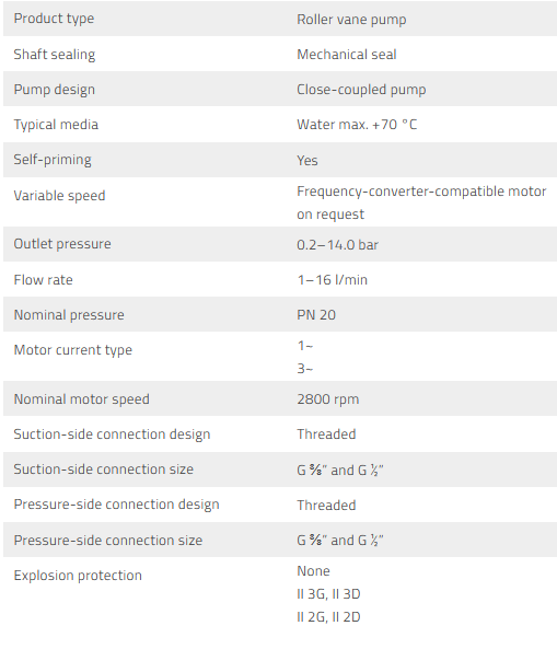 DS-180 – Roller vane pump with mechanical seal.  Roller vane pump,  Close-coupled pump,  Mechanical seal.