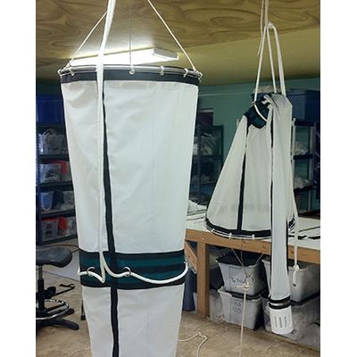 PUGET SOUND COLLARS CYLINDRICAL COLLAR USED TO CREATE “NON-FILTERING HEAD SPACE” ABOVE PLANKTON NETS. FLOWMETERS CAN BE MOUNTED INSIDE TO INTERNAL TABS. DESIGNED FOR LONG VERTICAL HAULS. USED IN CONJUCTION WITH RELEASE MECHANISM TO OBSTRCT MOUTH OPENING AFTER NET IS ACTAUTED TO CLOSE AT DEPTH. CONSTRCTED FROM HEAVY REINFORCED POLYESTER MATERIAL, GROMMETED BOTH ENDS TO ACCEPT SS RING AND BRIDLE AND PLAIN LOWER RING (PRICED SEPERATLY ABOVE)