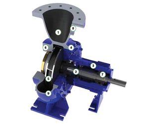 - Shrouded impeller design provides high efficiency and low hydraulic thrust