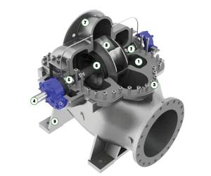 - Split casing design simplifies maintenance by allowing access to pump rotor without disturbing pipe work or driver