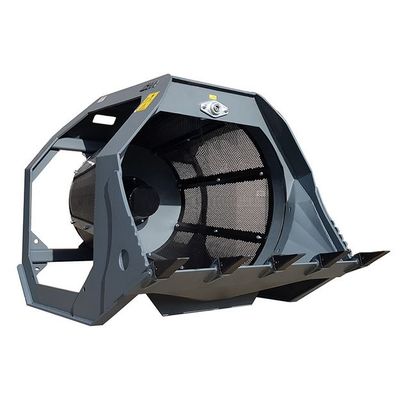 Screening buckets for excavators from 1 to 50 tonnes, for skid-steer loaders, backhoe loaders, wheel loaders and telescopic handlers, designed for sorting and screening inert material before or after crushing, plant material, river bottoms, stony ground, gravel and waste.