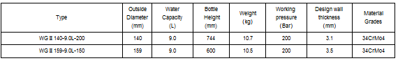 9 litre Gas Cylinder Product Parameters table (ISO9809-1 TPED 200BAR)