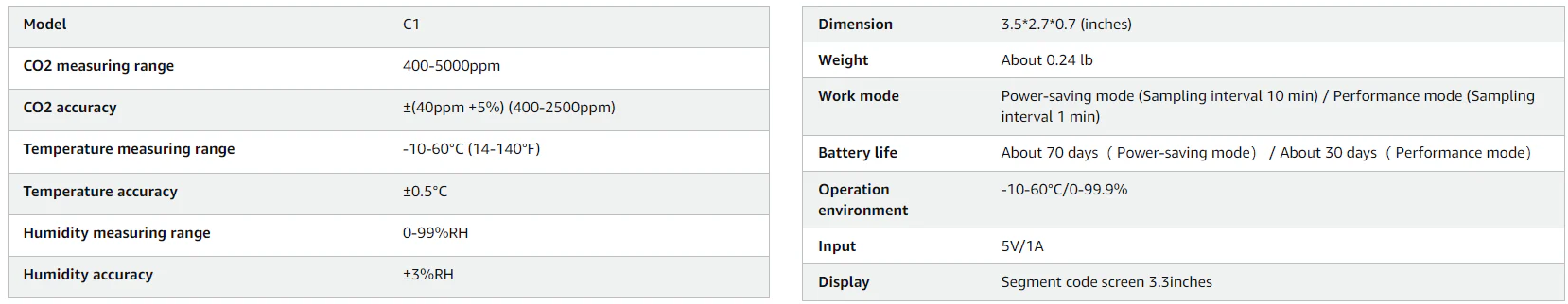 - ECO Mode: Experience extended CO2 monitoring with an exceptional 70-day standby duration, perfect for continuous use.