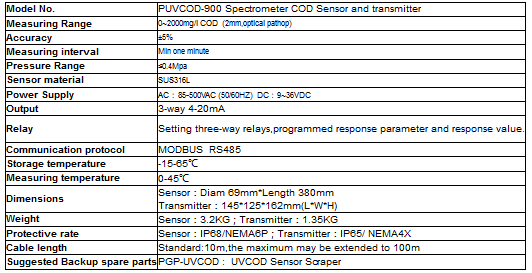 PUVCOD-900 Spectrometer UVCOD chemical oxygen demand analysis cod electrode controller instrument manufacturer. Based on the UV absorption reaction by organic matter, the PUVCOD-900 Spectrometer COD On-Line Analyzer uses the 254 nm spectral absorption coefficient SAC254 to measure the content of soluble organic compound in the water, and it can be converted to COD values under certain conditions. This method allows continuous monitoring without any reagents.