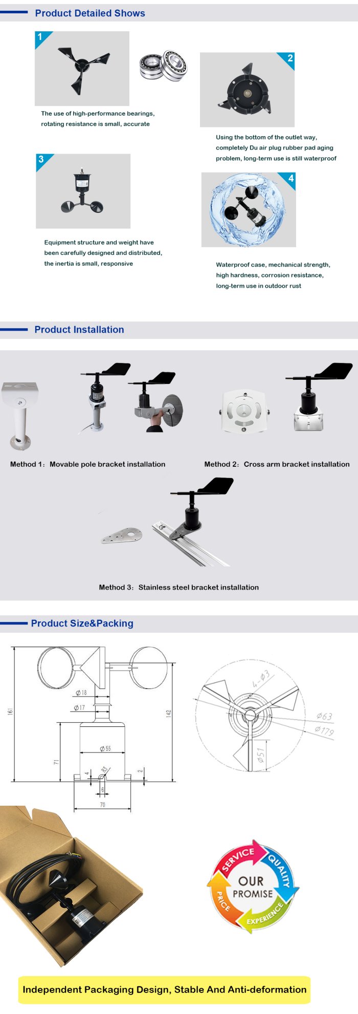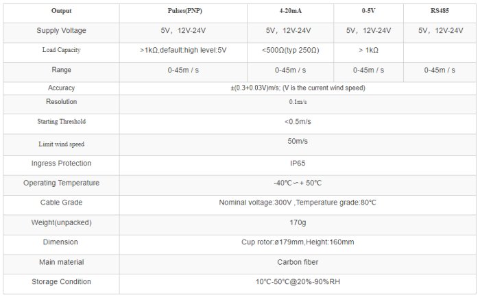 The CDF-10A Wind Speed Sensor uses a sensitive 3-cup anemometer designed to measure wind speed and wind run. The cups of this wind sensor are made of carbon fiber material, with high intensity and low starting threshold. The signal processing units are built in the housing shell. Coda CDF-10A 3 cup anemometer sensor can be widely used in meteorology, marine, environmental monitoring, airport, harbor, laboratory, industrial and agricultural areas. If you are looking for a professional wind speed sensor, can consider Coda CDF-10A cup anemometer wind sensor
