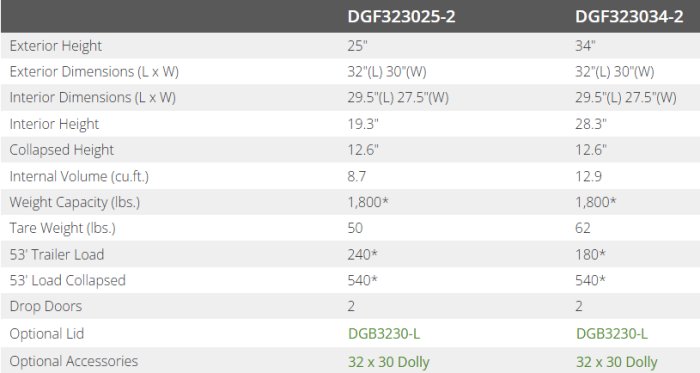 - 540 collapsed containers fit in a 53' dry van trailer