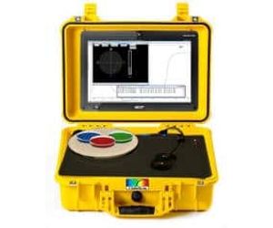 The StellarCASE-Color integrated portable case system includes interior mounting of spectrometer instrumentation pre-configured for “Open & Measure” application with no additional setup required. The system includes a top mounted tablet with pre-installed Real-time spectrometer operating software for CIELAB colorimetry & dE color difference measurement. Internal main power control system with ON, OFF, & Charge buttons. The pre-configured spectrometer equipment is covered with an acrylic sampling surface and the sampling fixture head for easy measurement & clean-up. The system battery has 8 hour lifetime for field and portable application. StellarCASE-NIR also available for NIR applications.