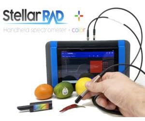 Handheld Colorimeter for full spectrum analysis & research-grade colorimetry of solids, liquids, and powders from 350-1100nm with <1nm spectral resolution. System measures real-time color parameters such as CIE L*a*b* & RGB with visual graph & color swatch. In addition, the system calculates Chroma, Hue, Luminosity, SRM, Lovibond, and EBC. Easily save a dE color reference and calculate color differences. StellarRAD+Color incorporates research-grade BLUE-Wave spectrometer optics. It has an 8″, high performance Android touchscreen interface that’s both ergonomic and user-friendly. System comes with pre-installed ColorWiz software, includes integrated halogen light, reflectance adapter, & RS50 white reflectance standard. System charging supply and USB key also included.