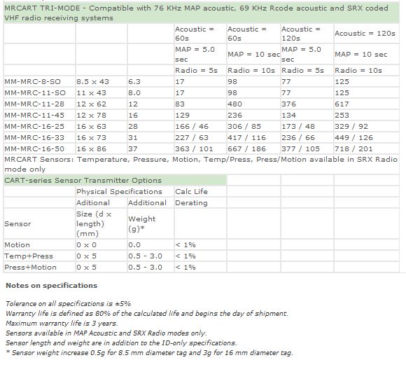 - Combines radio and acoustic transmission on a single device thereby elliminating the need for double tagging.