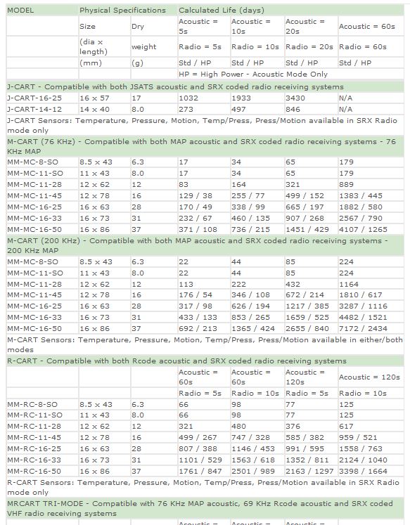 - Compatible with multiple acoustic receiving systems, including WHS, JSATS, MAP and Rcode, and coded radio (SRX 800) systems.