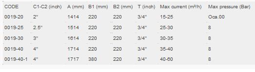 HEIGHT(mm). B1: HYDROCYCLONE WIDTH (mm). B2: FİLTER WIDTH (mm). C1-2: INPUT-OUTPUT. T: EVACUATION