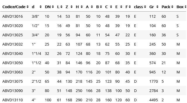 ABS double union ball valve with female ends for solvent welding BS 5392. Round ball with surface worked by grinding machine. EPDM seals with double O-R stem, PTFE ball seats. Working pressure PN16 from D.3/8″ up to D.2″, PN10 from D.2″1/2 up to D.4″.