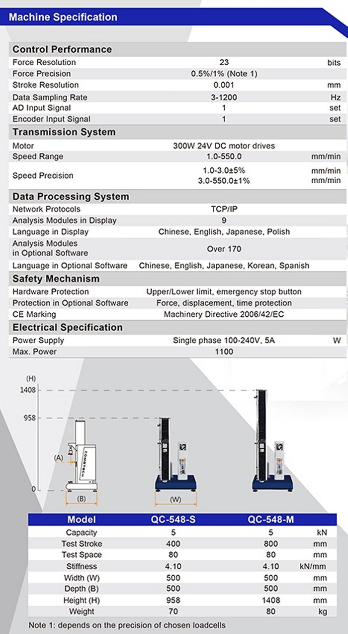Cometech - Model QC-548D2(5kN) -Computerized Tensile (Compression) Testing Machines