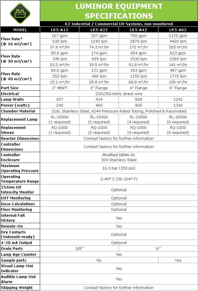LUMINOR - Model K2 5.0 -Commercial/Industrial UV Water Disinfection