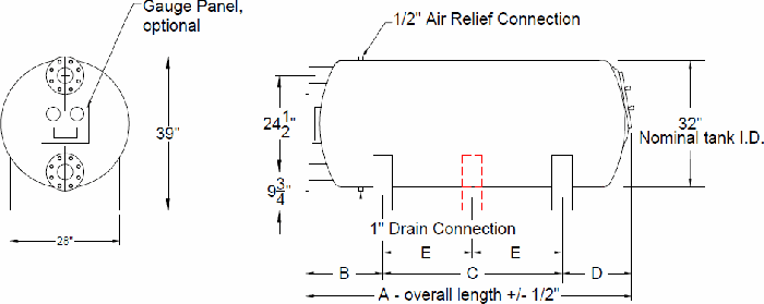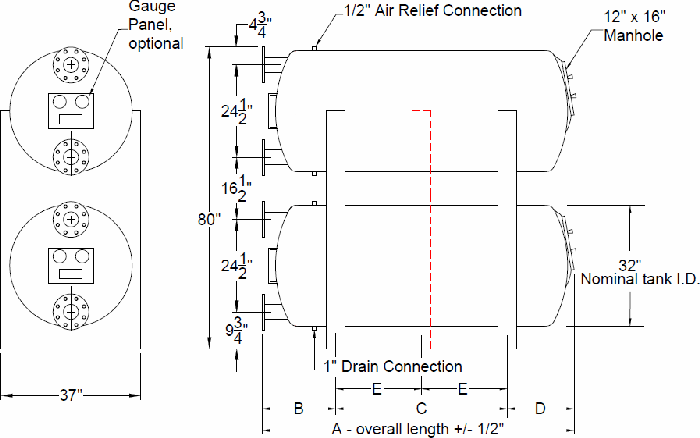 - (1) 12 X 16 gasketed man-way sealed by internal pressure