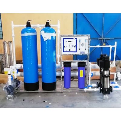 Reverse Osmosis system uses semi-permeable spiral wound membrane to separate and remove dissolved solids, organics, pyrogens, submicron colloidal matter and bacteria from water. Feed water is delivered under high pressure through permeators, where water permeates through the minute pores of the membrane and is delivered as