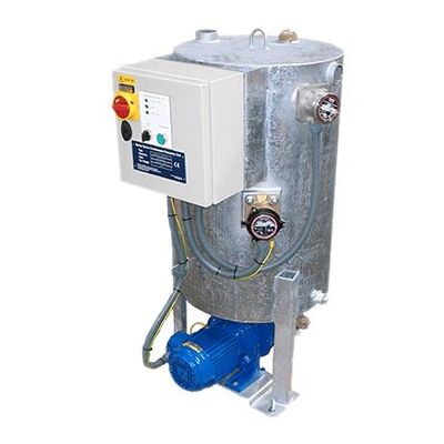 Compact packaged Condensate Recovery Unit incorporating a vertical galvanised receiver with single close coupled motor pump and control gear pre wired ready for use
