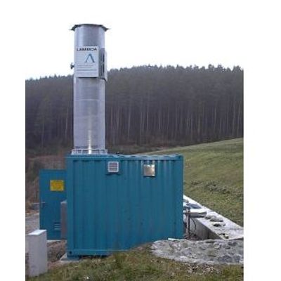 Gas feed, high-temperature flare and control system are integrated in one container in LAMBDA compact plants. This means smaller dimensions and flexible applications. Both pressure-controlled rotary compressors and blowers are used to feed the landfill gas. The landfill gas is treated in a high-temperature flare which is temperature-controlled to observe the specifications of the Technical Instructions on Air Quality. The compact plants generally include a gas manifold to connect up to 8 gas wells, a condensation separator with gas filter as well as all the safety elements such as flame arresters, rapid-action stop valves or flare flame monitoring. A condensation collection tank or an utilisation outlet for a cogeneration unit can also be provided on request.