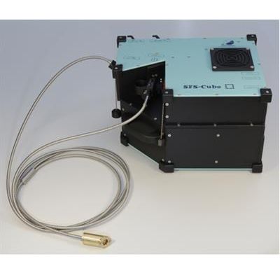 The SFS-Cube™ is a compact scanning spectrometer designed to measure the Spectral Fluorescence Signature (SFS) of liquid, powder and solid samples. The SFS is an excitation/emission matrix of spectral intensity of a sample with filtered out elastic (Rayleigh) scattering. The SFS-Cube™ is optically designed as an all-reflection spectrometer to operate in a wide spectral range with no chromatic aberrations.