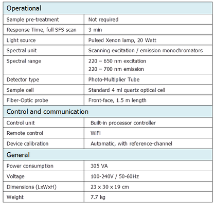 The analyzer can be used in a large variety of spectrofluorometry applications, including the qualitative and quantitative analysis of the organic constituents in liquid, powder and solid samples, including PAH, oils, lubricants, phenols, organic chemicals, etc., as well as living materials (plants, bacteria, viruses, spores, etc.). SFS-Cube™ can work as a quick screening tool in an industrial environment, especially to reduce the number of routine and time-consuming analyses, giving quick qualitative and quantitative information about the changes in the oil or other chemical substance under investigation. The principle merits of this technique are its high sensitivity, selectivity, and simplicity of the operating procedure.