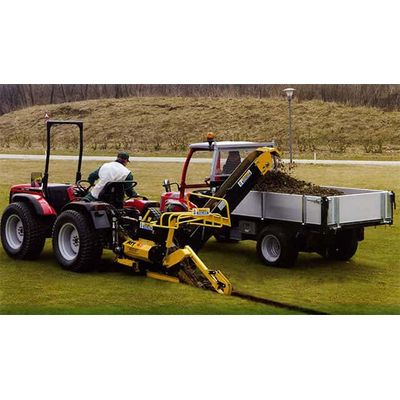 The most versatile small sportsturf trencher. Suitable for compact tractors of 20-45hp (15-34kW), the AFT45 was designed as a versatile trencher for golf courses and sports fields for the installation of drainage and irrigation systems. It is equally suited for laying pipes and cables on building sites, etc. The ideal tool to quickly install sophisticated drainage systems, as and when you need it and with minimal disruption to play.