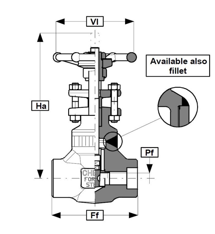 Ratings (ASTM A105): 1500 p.s.i. @ 850°F, 3705 p.s.i. @ 100°F. Test pressure (ASTM A105): Hydraulic:(minimum), Body - 5575 p.s.i. Seat - 4100 p.s.i. Air under water: Seat - 85 p.s.i. Standards: Construction: API 602, Socket weld: ASME B16.11, Threaded: ASME B1.20.1, Butt weld: ASME B16.25, Test: API 598. Connections (xx): SW: Socket weld, B8: Butt weld 80, TH: Threaded NPT, TS: Sw/NPT, SE: Sw(e)/NPT, SU: Sw(u)/NPT, B6: Butt weld 160.
