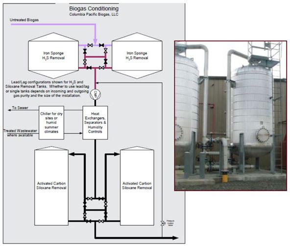 MARCAB, which has been providing quality gas scrubbing systems for wastewater, agricultural and industrial applications since 1970, now offers complete Gas Conditioning Systems. MARCAB has teamed with Columbia Pacific Biogas (CPB) and now offers a full range of gas conditioning options. Columbia Pacific Biogas’ principal owners bring over 70 years of engineering and design experience to the table, not to mention years of hands-on operational experience. MARCAB and CPB have worked together on projects from 30 to 2800 scfm. In addition to their time proven Iron Sponge systems with their patented In-Vessel Regeneration System for H2S removal, MARCAB can also now offer options such as siloxane removal, temperature and moisture control, and gas boosting. These packages are all neatly skid-mounted and piped for easy on-site hook-up.