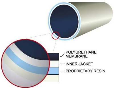 • Materials: Composite of woven textile jacket with epoxy and an inside polymeric membrane for watertightness