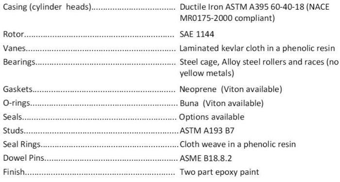 Inlet Connection 3` ANSI Class 150 Flat Face Flange.Outlet Connection 2` ANSI Class 150 Flat Face Flange.Operating Speed Range 600 rpm through 1465 rpm.Maximum Allowable Working Pressure 150 psig (10.2 barg).Maximum Allowable Operating Temp 350°F (176°C).Shaft Seal Single face mechanical or double bellows.Bearings Steel cage, Alloy steel rollers and races (no yellow metals).Lubrication Once through oil injection system - 7 points (by others).Drive Type Direct couple or belt driven, suitable for VFD.Shaft End 1.625` diameter at coupling