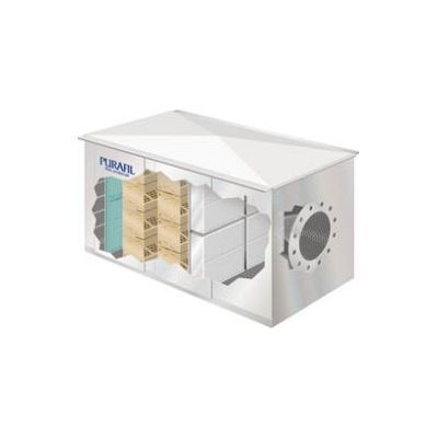 Section 1: The first section of the CIF is a MERV 6 prefilter designed to remove particulates measuring 10 microns in diameter or greater. The purpose of this filter is to protect the following stage of Purafil chemical media from becoming coated with dust, which would reduce its efficiency.
