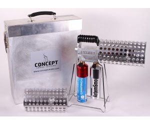 The Artem Gun is a unique, off power smoke generator ideal for creating large volumes of smoke for applications such as fire training, public order training, indeed any application where complete portability is a requirement. Using conventional Taymar type gas cartridges as the heating source (available worldwide) and a Concept Artem Smoke Canister, the Artem Gun is incredibly straight forward to use. Simply screw in the canisters, pre-heat the stainless steel coil for a few seconds, and turn on the smoke. It`s that easy. With an output that puts pyrotechnic smoke bombs to shame, complete controllability, and low running costs, the Artem Gun is the ideal solution for external smoke.