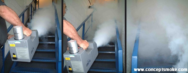 The Colt 4 Twin Turbo creates a smoke with sub micron particle size, meaning much lower chemical concentrations to achieve and maintain specific smoke concentrations than conventional smoke systems. For fire training purposes this means that much safer (and more realistic) conditions can be achieved.