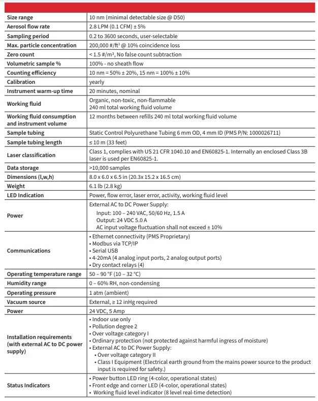 - Sample flow rate of 2.8 LPM and does not use sheath airflow, providing volumetric sampling