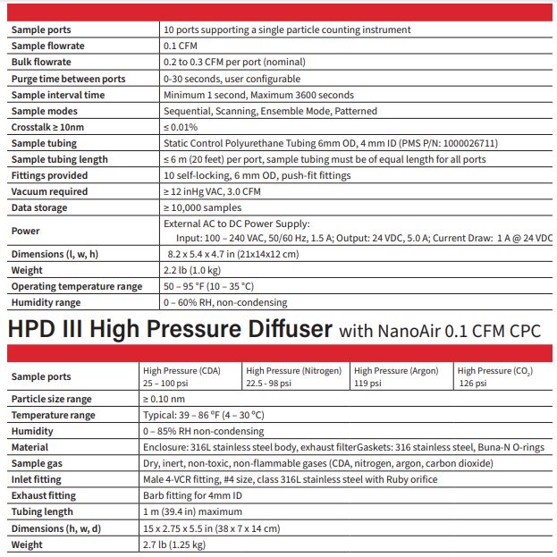 Additionally, the NanoAir condensation particle counter is high-pressure gas compatible with the HPD-III from PMS, and data can be viewed, analyzed, and reported using PMS Facility Net facility monitoring software or transmitted directly to third-party SCADA systems or process tool inputs.