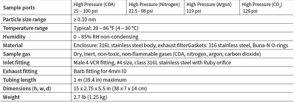 - Sample ports: 10 ports supporting a single particle counting instrument