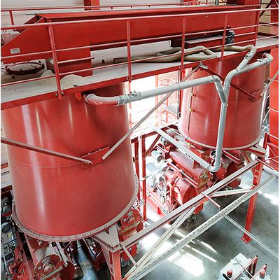 Conditioning takes place in large containers in front of the presses. The useable volume of the conditioning containers amounts to approx. 15 m³. This volume ensures a high time of direct contact in the conditioner and is crucial for the production of pellets with a high quality that meets the requirements. Conditioner discharge is the job of robust agitators, which are separated from the interior with a special sealing.