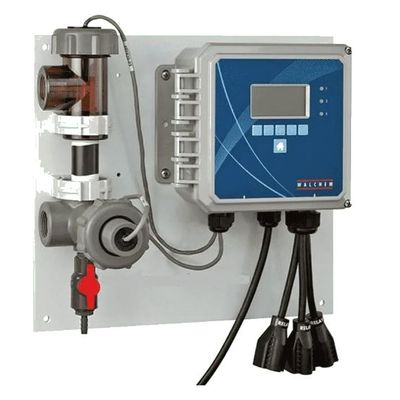 W100 Complete with:- Electrodeless sensor and manifold (Important because everyone else uses the cheaper contact style probe)- 1 each 4-20ma output- 4 output relays- 1 float switch and housing- 120 to 240 volt input- Mounted on backboardLarge display with icon based programming makes setup easy. Universal sensor input provides extraordinary flexibility; the same controller can be used with almost any type of sensor needed. Multiple language support allows simple setup no matter where your business takes you.The third control relay allows the controller to be used in more places than other entry level products Economical package with no additional cost for timer functionality.