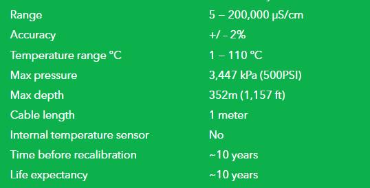 This is a high quality conductivity measuring sensors. There are 3 types of lab grade conductivity probe: K 0.1 which measures between 0.07 − 50,000 μS/cm, K 1.0 which measures between 5 − 200,000 μS/cm and K 10 which measures between 10 μS/cm − 1 S/cm conductivity range.